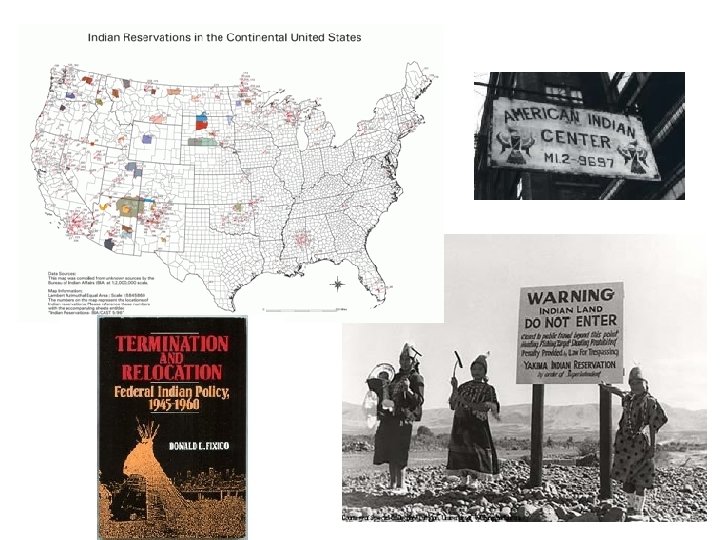 The Termination Policy • In 1953, the federal government announced that it would give up its responsibility for Native American tribes – termination policy – Eliminated federal economic support, discontinued the reservation system, and distributed tribal lands among individual Native Americans, and helped them settle in cities – Despite this, many Native Americans were discriminated against and were not given any jobs, medical care – In the end, the Termination Policy was terminated