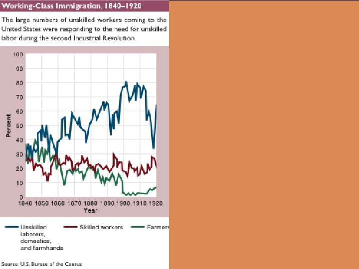 THE NEW IMMIGRATION, 1880 -1900 l Europeans came primarily to work – – – l l When times were good and American industry needed large numbers of unskilled workers, migration was heavy Many workers hoped to earn enough money in the United States to realize their ambitions at home – l Twenty to thirty percent of Italians returned home While most Mexicans arrived in the twentieth century, overpopulation and new land policies did lead some Mexicans to come to the United States at the end of the nineteenth century – l Most were young, single men with few skills Jews most often came in family groups Women predominated among the Irish Most ended up in the Southwest and West working for the railroads and mines. Overpopulation, depressed conditions, unemployment and crop failures drove 264, 000 Chinese to the United States between 1860 and 1900 – – – Most stayed on the West Coast Tended to be unskilled males who planned to return home to their families A limited number of Chinese women were brought over as prostitutes