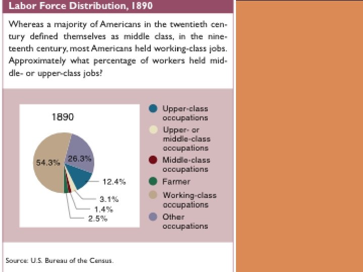 THE BALANCE SHEET l l Except for skilled workers, most laboring people did not earn enough to share in the bounty that industrialization created. Culture and background influenced worker perspective about their condition – – – l Workers achieved some occupational mobility, especially across generations Mobility, like occupation, was related to background, cultural attitudes, family size, education and group leadership African Americans and Hispanic Americans enjoyed little mobility Although immigrants’ occupational mobility was limited, other rewards often compensated for the lack of success at the workplace – – Social clubs and fraternal organizations also provided compensation A few rags to riches stories also provided encouragement