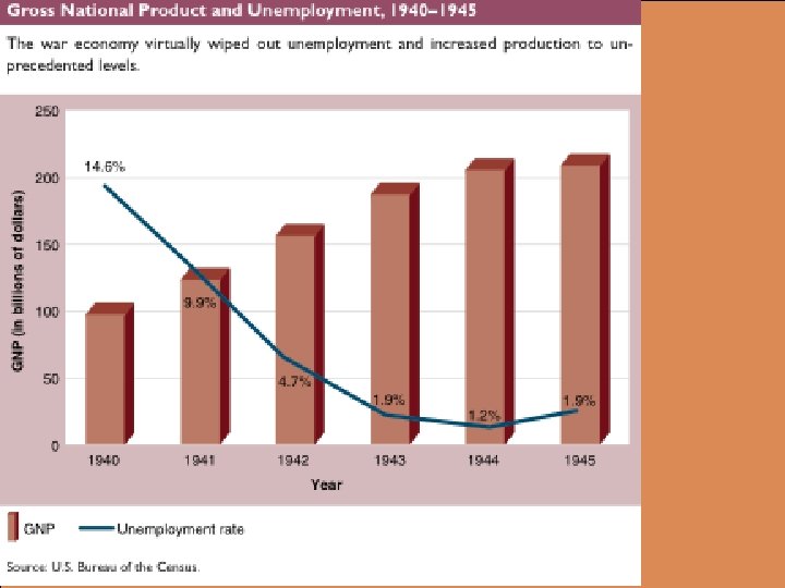 MOBILIZING FOR WAR l The War Production Board (WPB) offered businesses cost-plus contracts for retooling for the war effort – l l Office of Scientific Research and Development (ORSD) was set up to perfect new weapons and other products including the atomic bomb, radar, high-altitude bomb sights, jet engines, pressurized cabins for airplanes, and penicillin FDR tried hard to gain the cooperation of businesspeople – – l Often the government financed new plants and equipment Appointed business leaders in key positions and abandoned antitrust actions Industrial production and new corporate profits nearly doubled during the war Large commercial farmers also received incentives for war production – Accelerated mechanization of the farm and increased the use of fertilizer even as actual farm population declined