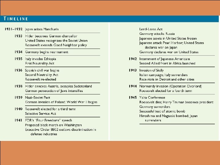 DISCOVERING U. S. HISTORY ONLINE World War II Timeline http: //history. acusd. edu/gen/WW 2 Timeline/start. html l Resource Listing for World War II http: //www. ibiblio. org/pha/index. html l World War II Museum http: //www. thedropzone. org l Remembering Pearl Harbor http: //plasma. nationalgeographic. com/pearlharbor/ l A People at War http: //www. archives. gov/exhibits/a_people_at_war/a_people_at_w ar. html l Poster Art of World War II http: //www. archives. gov/exhibits/powers_of_persuasion/powers_of _persuasion_home. html l