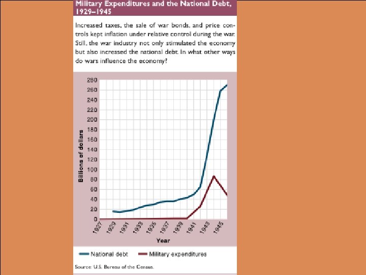 MOBILIZING FOR WAR l Large commercial farmers also received incentives for war production – l l Office of Price Administration (OPA) set prices and rationed products National War Labor Board (NWLB) had the authority to set wages and hours and to regulate working conditions – – l l l Accelerated mechanization of the farm and increased the use of fertilizer even as actual farm population declined Union membership grew rapidly during the war and in return for “no strike pledges” the NWLB allowed agreements that required workers to retain their union membership through the life of their contract Labor leaders complained about increased government regulation Government tried to reduce inflation by selling war bonds and increasing taxes American economy rose to the occasion and produced the supplies needed to win the war War stimulated the growth of the federal bureaucracy and accelerated the government’s central role in the economy – Increased the cooperation between industry and government