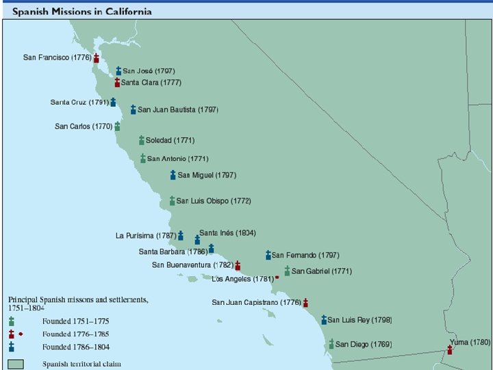 SPAIN’S FRAIL NORTH AMERICAN GRIP l l Spanish lost control of Florida Indians, who had been hurt by South Carolinian sponsored slave raid, to British and French trade goods Spanish settlements, regarded as marginal, money-losing affairs that were only useful as defensive outposts, stagnated in first half of eighteenth century – – l New Mexico had a population of 10, 000 at mid-century Racial mixture and social fluidity more prevalent than in English colonies Southwestern Indians maintained a certain autonomy but California Indians were less successful after Spanish extended control in 1770 s from San Diego to Yerba Buena (San Francisco) – Franciscan missionaries attracted Native Americans and then held them in conditions that approached slavery