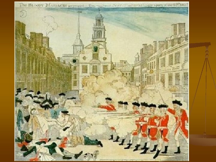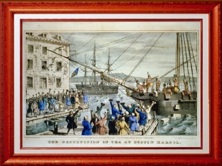 Road to Revolution n March 5, 1770, an unruly mob is fired upon by English troops in Boston Harbor -Boston Massacre n England continues to tax the colonists without allowing them representation n December 16, 1773, The Boston Tea Party is a direct revolt against the tea tax n In response, England passes the Coercive Acts shutting down Boston harbor until the colonists pay their taxes