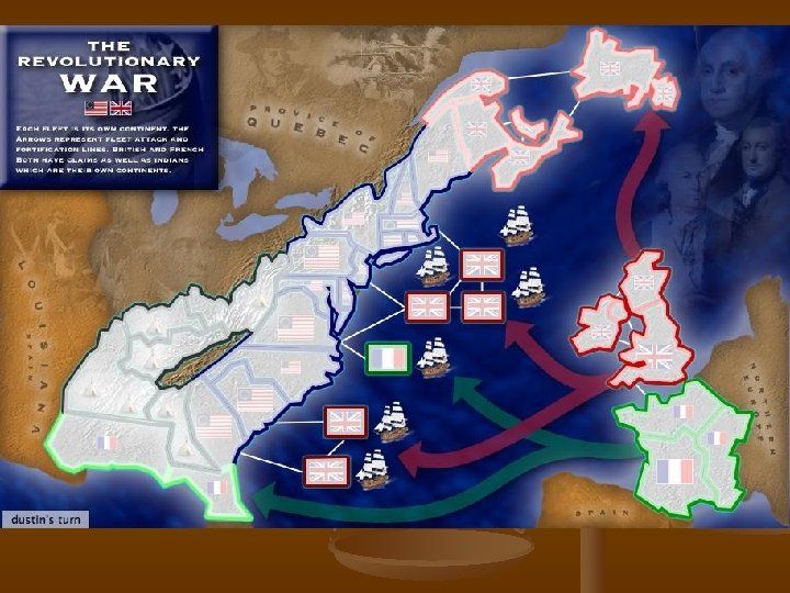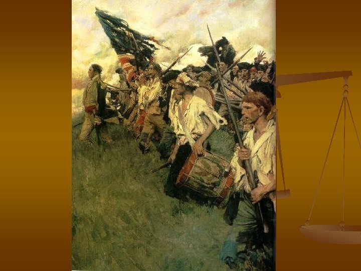 Road to Revolution n September 1774, The First Continental Congress representing every colony meets to discuss the abuses of England -colonists should not obey the Coercive Acts -States should create their own militias n April 1775, England enforces Coercive Acts and begins suppressing open rebellion n On April 19 th 1775, a Massachusetts Militia encounters the English Army n An unordered gun shot begins the American Revolution