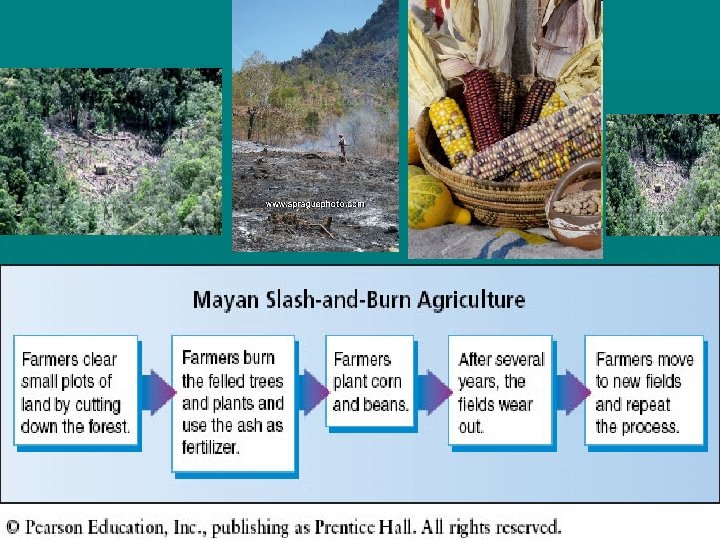 Slash-and-burn } Due to difficult growing conditions in the rainforest, the Maya used this technique to cultivate (grow and produce) crops. They would cut down trees then burn them to enrich the soil.