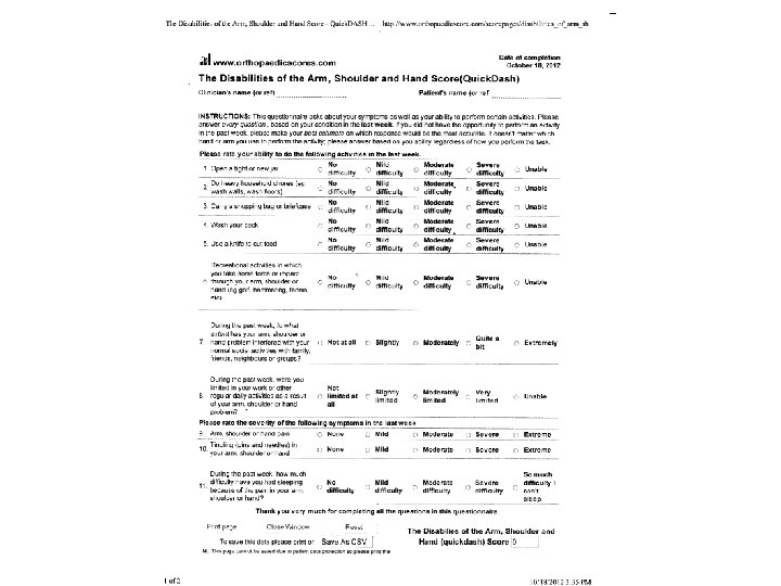 Grade Modifier #1: Functional History • Functional History is based on subjective reports that are attributable to impairment. (page 406) • For upper extremity injuries, 6 th Edition recommends using Quick. Dash (see attached “The Disabilities of Arm, Shoulder and Hand”). • For lower extremity injuries, 6 th Edition recommends using Limb Questionnaire. (see attached) • For Spine injuries, 6 th Edition recommends using Pain Disability Questionnaire. (see attached)