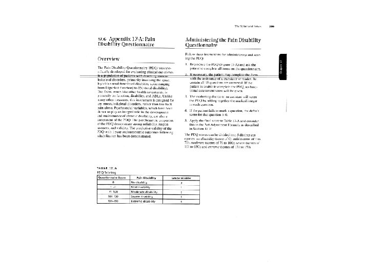 Clinical Study Tables • For upper extremity injuries, Table 15 -9, page 410. (see attached) • For lower extremity injuries, Table 16 -8, page 519. • For spinal injuries, Table 17 -9, page 581.