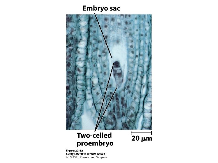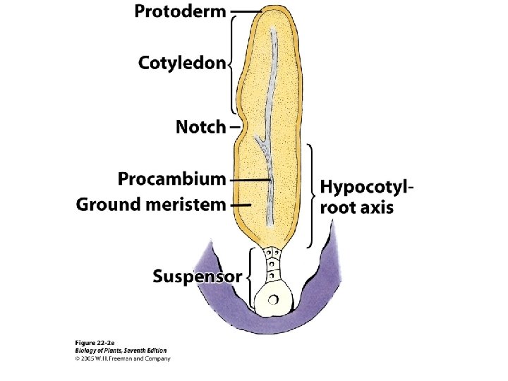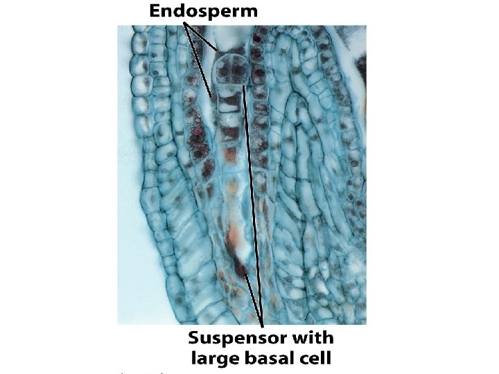 Embryo development • Orderly cell division • Differentiation leads into two distinct parts – Embryo proper – The suspensor Before this stage is reached the developing embryo is referred to as the proembryo Becomes food nourishing component