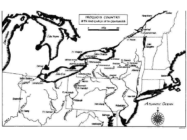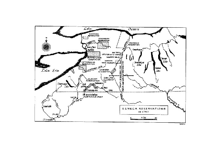 Contact with Americans • Treaty of Fort Stanwix (1784) established the Iroquois reservations • Subsequent treaties left the Iroquois with ever smaller reservations, so that traditional life became impossible
