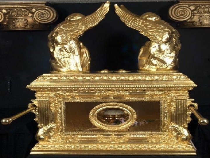 • At the time the Israelites crossed the Jordan River into the “Promised Land” the Bible states that the river stopped flowing when those who carried the Ark set foot in the river. • The entire Ark was plated with gold, and a crown of gold was put around it. • Four rings of gold were attached to its four feet, two on each side and through these rings staves of shittim-wood plated with gold were placed to carry the Ark. • A golden cover was placed above the Ark; also called kapporet.