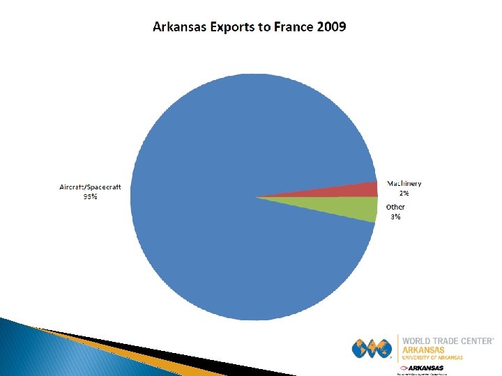 What Trade Means to Arkansas � Civilian Aircraft • Arkansas’ largest export commodity valued at $1. 67 billion in 2009 � Agricultural Products • Rice: Arkansas’ 3 rd largest export valued at $224 million in 2009 • Poultry: Arkansas’ is 2 nd largest poultry producer in the US � Manufacturing Products • Manufactured commodities exported valued at $355 million for May 2010