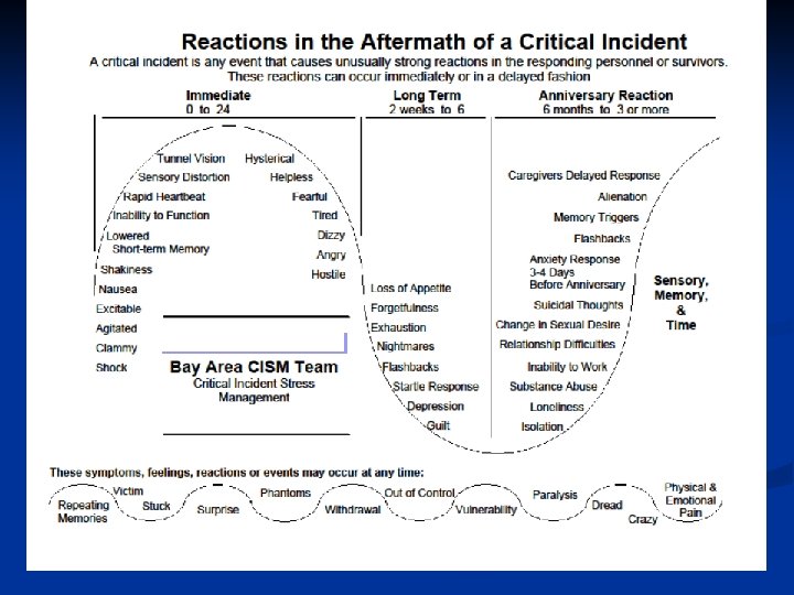 Support Tips Stay in the present moment n Reassure stress response is normal n Focus on most difficult issue RIGHT NOW n Assess what is needed RIGHT NOW n No easy way over stress, but moment by moment, we get through and build the NEW NORMAL n