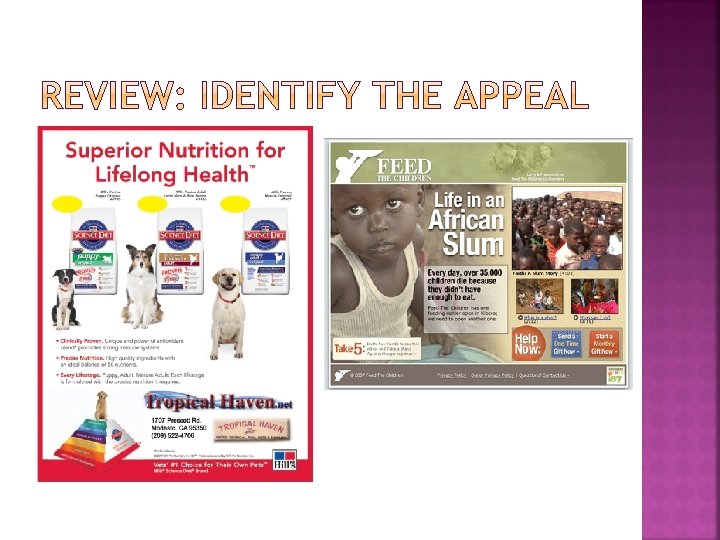 Pathos is appeal based on emotion. Many advertisements are pathos-driven, including those for fashion (desire to fit in), for toothpaste (fear of stained teeth), and for beauty products (feel better about yourself), to name a few. Oftentimes pathosdriven ads simply invoke an “awwww” feeling.