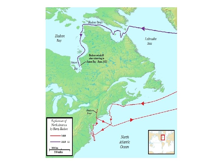 Henry Hudson • Henry Hudson, and English Captain, was hired by the Dutch East India Company to scout for opportunities in North America, specifically the “Northwest Passage” • He explored three waterways looking for this passage • Later all named after him – Hudson River – Hudson Bay – Hudson Strait • Through these voyages, the Dutch claimed settlements in modern day New York, New Jersey, and Pennsylvania