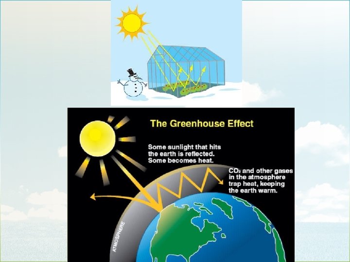 The atmosphere also contains: q q water vapor: which forms clouds and precipitation and absorbs heat energy particles: like dust, salt, pollen ozone: a gas in the ozone layer that absorbs harmful UV radiation. Greenhouse gasses: gas molecules that absorb solar radiation, trap heat, and can increase the temperature of the atmosphere. q Carbon dioxide: most worrisome q Water vapor: most abundant