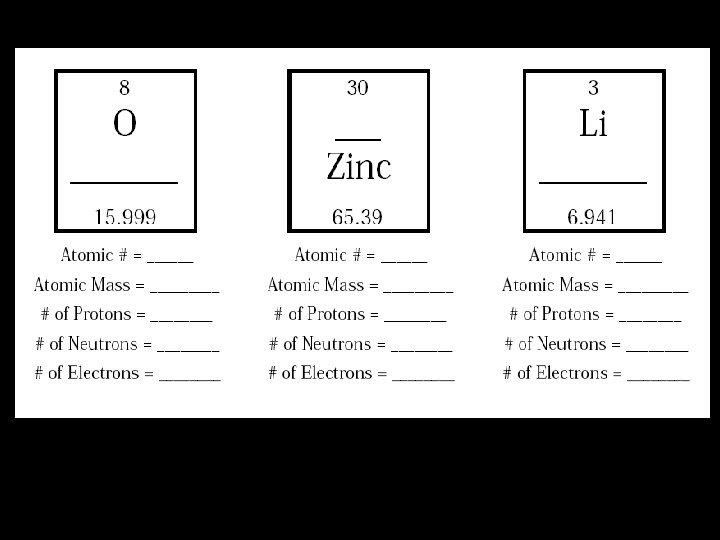 The Atoms Family - Atomic Math Challenge Atomic Number Symbol Name Atomic Mass electrons protons or _______. Atomic number equals the number of ______ protons + _______. neutrons Atomic mass equals the number of ______