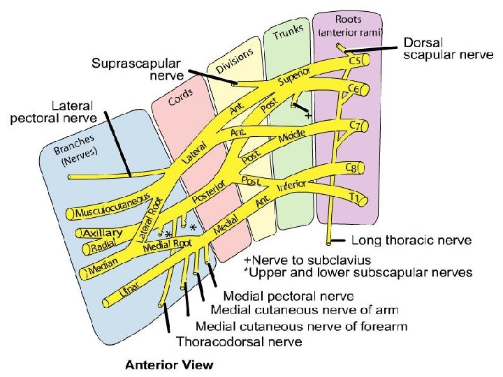 Branches from the roots Dorsal scapular (C 5) Ø Long thoracic (C 5, 6, 7) Ø