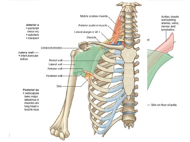 Important Relations Axillary vein Brachial plexus P major P minor Subscapularis L dorsi T major Biceps Corachobrachialis