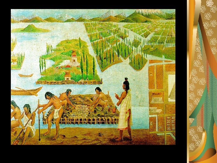 Aztec Empire Built chinampas = artificial islands used for farming made by piling mud from the lake onto rafts floating gardens As population grew, Aztecs expanded outside of the city built canals and bridges to connect the mainland to the island where the capital was