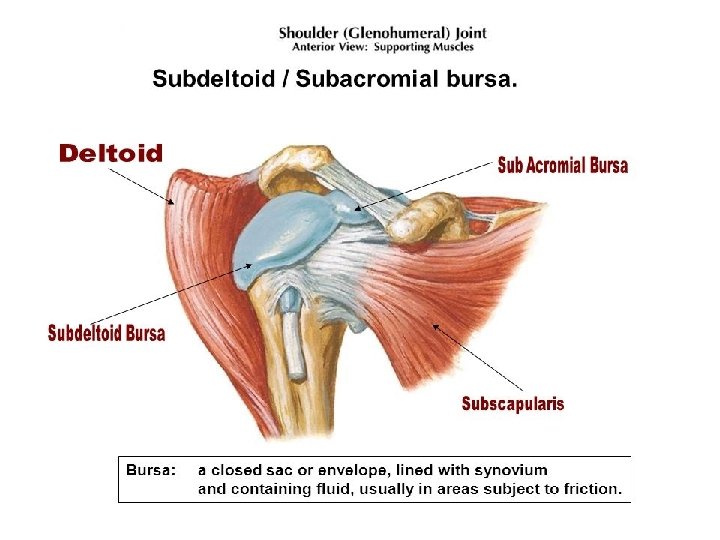 Structures under cover of Deltoid BONE- Upper part humerus, coracoid process , greater tubercle, lesser tubercle Intertuberculus sulcus Bursa- Subdeltoid , subacromial bursa Muscles – attached around shoulder joint Vessel- Ant and Post circumflex humeral vessel Nerves- Axillary