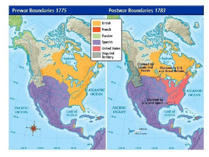 The Treaty of Paris, 1783 • The peace agreement that officially ended the American Revolution. Three negotiations were made: 1. England officially recognized America as an independent country 2. New boundaries were set, all Territory East of the Mississippi 3. All British forts were to be removed from North America