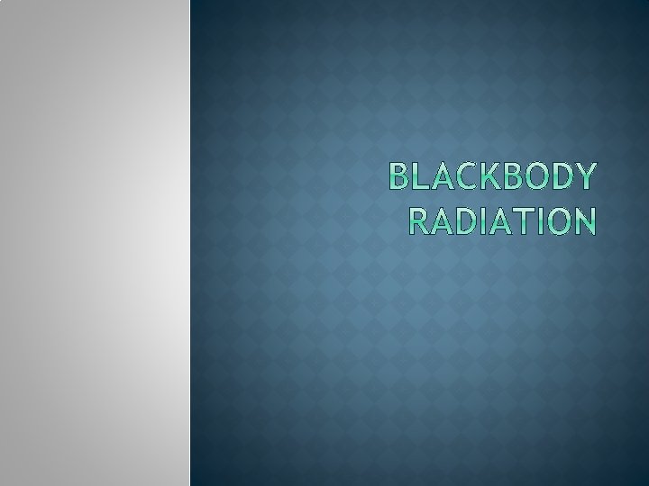 � Blackbody: an object that absorbs and emits all radiations of all possible frequencies � Kirchhoff observed that when heated to incandescence, gases emit certain frequencies of light, and that all objects absorb the same frequency of radiation they emit, making a blackbody a “perfect radiator” � When the wavelength moves into the UV zone, the intensity drastically drops – Ultravoilet Catastrophe