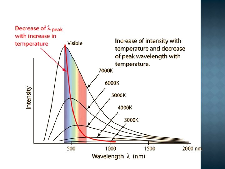 � Wein’s Law �It tells us as we heat an object up, its color changes from red to orange to white hot. �You can use this to calculate the temperature of stars. �b is a constant of proportionality, called Wien's displacement constant and equals � 2. 897 768 5(51) × 10– 3 m when K = 2. 897768 5(51) × 106 nm K.
