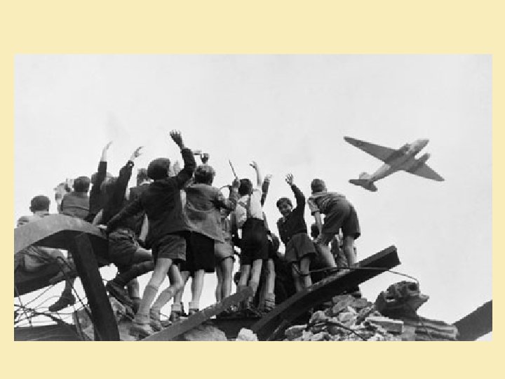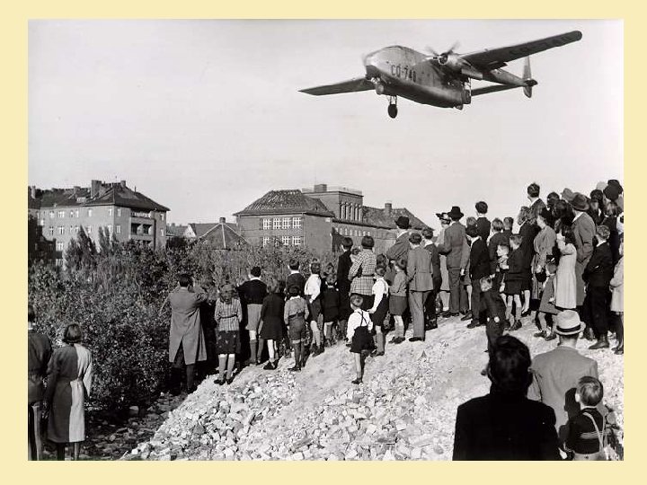 • Only was an airlift • Three narrow air corridors were set up to Berlin • Conditions were bad – ice, fog etc – 79 Allied pilots killed • Russian fighter planes followed Allied Planes in case they flew off course • Berliners welcomed planes with open arms