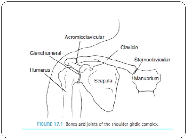 Shoulder Girdle Includes: 1. G-H joint 2. Subacromial space 3. S-T joint 4. A-C joint 5. S-C joint