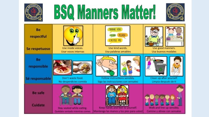 The British School Quito is a learning community where students, staff and families work together to provide the foundations for academic excellence and personal growth. Our Values • We live and learn together with respect and care for each other. • We live and learn with a happy and welcoming attitude to everyone. • We live and learn with an active and determined approach to our ambition.