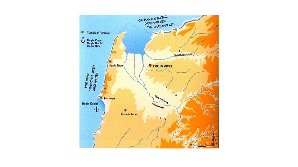 Excavations at Troy (Turkish name of site is Hisarlık) • Heinrich Schliemann, 1870 s and 1880 s: belief in historicity of Iliad and Odyssey, excavation to prove truth of this. • Successive excavators W. Dörpfeld, Carl Blegen, U. of Cincinnati, 1930 s • Manfred Korfmann, University of Tübingen, began in 1990 s and ongoing
