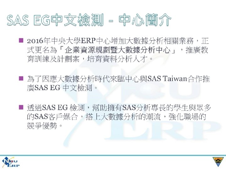 The Business Intelligence and Analytics (BIA) Program at NCU 陳炫碩 主任 NCU ERP Center 2017年 2月14日