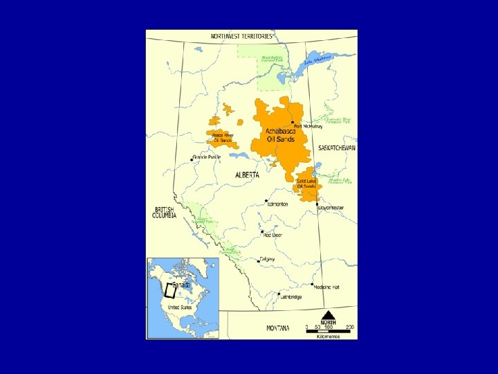 The Canadian Oil Sands • The US consumes annually 7 x 108 bbl oil • The Alberta Canada (Atabascan) oil (tar) sands contain ~2 x 1011 bbl oil, recoverable at current price, matching the recoverable reserves of Saudi Arabia • The 2005 Albertan tar oil production was 4 x 108 bbl