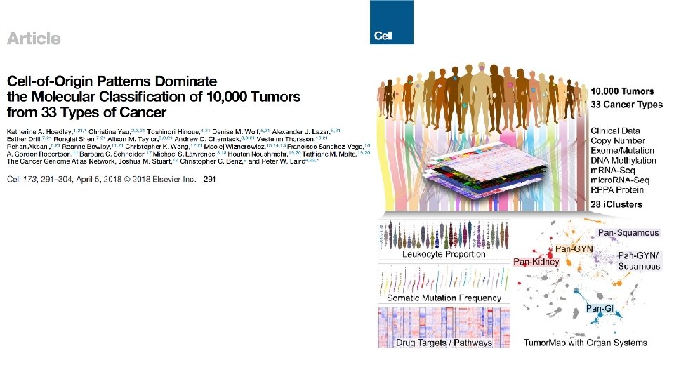 Driver Mutation Enrichment C 1: STAD (EBV-CIMP) C 2: BRCA (HER 2 amp) C 4: Pan-GI (CRC) C 6: OV C 8: UCEC C 10: Pan-SCC C 11: LGG (IDH 1 mut) C 12: THCA C 13: Mixed (Chr 8 del) C 14: LUAD C 15: SKCM/UVM C 17: BRCA (Chr 8 q amp) C 18: Pan-GI (MSI) C 19: BRCA (Luminal) C 20: Mixed (Stromal/Immune) C 23: GBM/LGG (IDH 1 wt) C 25: Pan-SCC (Chr 11 amp) Bailey et al, Cell, 2108 PIK 3 CA, ARID 1 A TP 53 APC, TP 53, KRAS TP 53 PTEN, PIK 3 CA, ARID 1 A TP 53 IDH 1, TP 53, ATRX BRAF TP 53 PIK 3 CA TP 53 EGFR TP 53