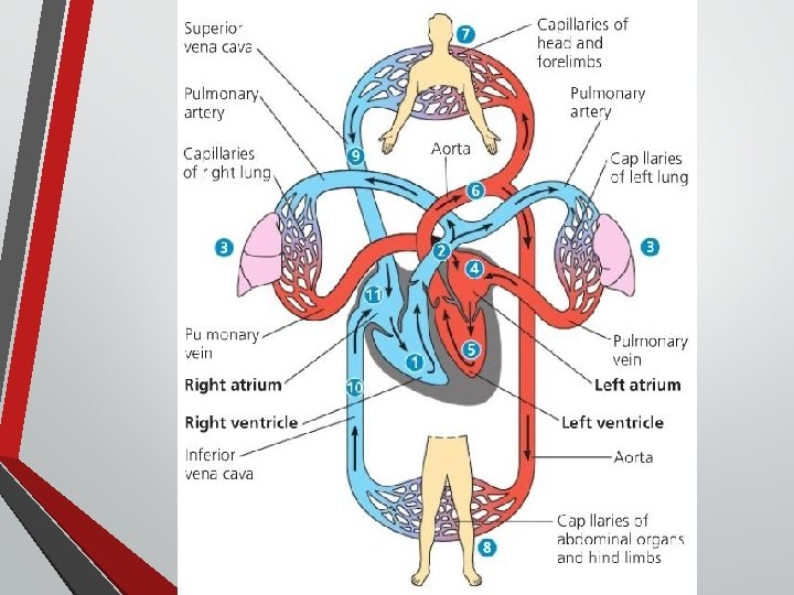 HEART Can be considered a 4 -chamber, double-pump system. The L & R sides work in parallel simultaneously. OXYGENATED BLOOD DE-OXYGENATED BLOOD