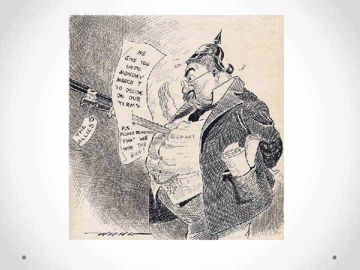 The Treaty of Versailles • The Treaty of Versailles ended World War I • It said: Germany must take 100% blame for the war Germany must agree to the treaty or face continued war Germany would lose 25, 000 square miles of land (7 million people!) Germany would lose ALL of its colonies Germany was limited to 100, 000 men in the military, had to hand over much of its naval forces, and could not have an air force o Germany had to pay $55 billion to the Allied Powers o o o