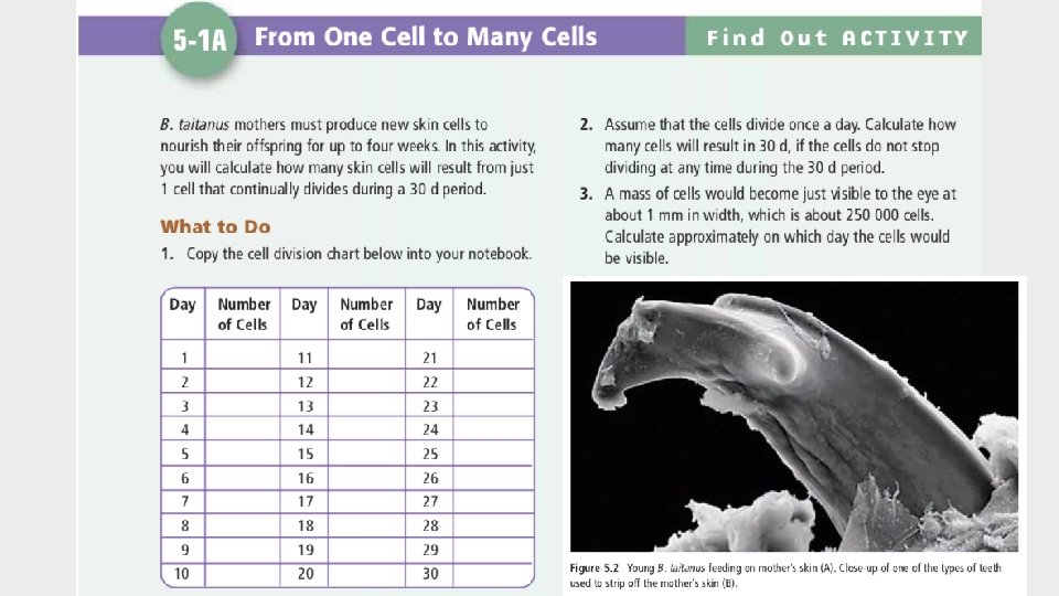 Why do cells divide? Instead of dividing, why don’t cells just grow larger and larger? If the cell grows too large, it will have trouble moving enough nutrients and wastes across the cell membrane. Ø As the cell grows, the volume of the cell increases much more rapidly than the surface area of the cell membrane. The larger a cell becomes, the more demands the cell places on its DNA.