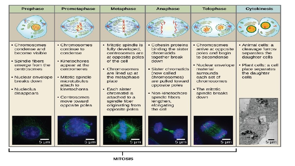 M phase it is the most dramatic phase of the cell cycle. During this brief period, the cell reorganizes virtually all of its components and distributes them equally into the two daughter cells. The main problem for a cell in M phase is to accurately segregate its chromosomes, which were replicated in the preceding S phase, so that each new daughter cell receives an identical copy of the genome. Eukaryote cell solve this problem by assembling two specialized cytoskeletal machines: -one pulls the duplicated chromosome -another divides the cytoplasm into two halves (cytokinesis). M phase is conventionally divided into six stages