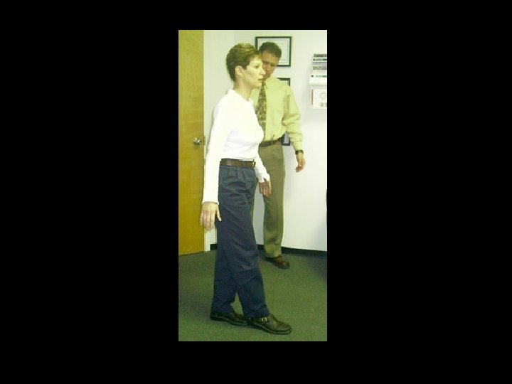 Gait n n n have patient walk across room under observation Watch for normal posture + coordinated arm movements ask patient to walk heel-to-toe across room, walk on toes to test for plantar flexion weakness, and on heels to test for dorsiflexion weakness Abnormalities in heel to toe walking: ethanol intoxication, weakness, poor position sense, vertigo -- exclude before poor balance is attributed to a cerebellar lesion elderly patients have difficulty with tandem gait (heel to toe walking) -- general neuronal loss impairs combination of position sense, strength, coordination