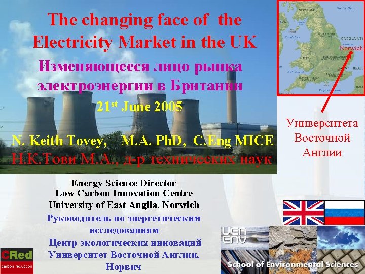 Н. К. Тови М. А. , д-р технических наук Факультет экологических исследований Университета Восточной Англии k. tovey@uea. ac. uk Energy Science Director Low Carbon Innovation Centre School of Environmental Sciences University of East Anglia Norwich NR 4 7 TJ