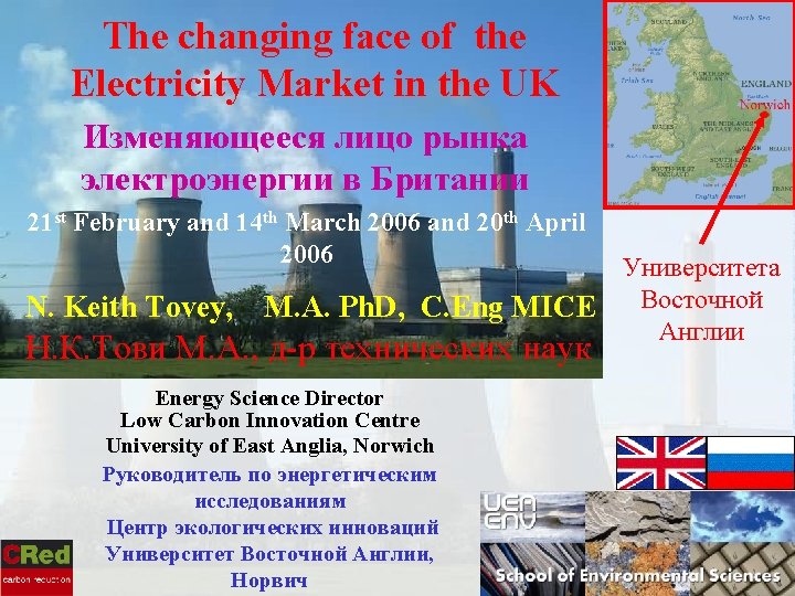 Н. К. Тови М. А. , д-р технических наук Факультет экологических исследований Университета Восточной Англии k. tovey@uea. ac. uk Energy Science Director Low Carbon Innovation Centre School of Environmental Sciences University of East Anglia Norwich NR 4 7 TJ