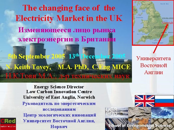 Н. К. Тови М. А. , д-р технических наук Факультет экологических исследований Университета Восточной Англии k. tovey@uea. ac. uk Energy Science Director Low Carbon Innovation Centre School of Environmental Sciences University of East Anglia Norwich NR 4 7 TJ