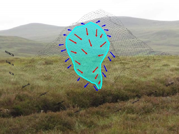 Hydrological theory • The physical understanding of the rates with which water moves through the environment has long-distant origins. In 1856, Henri Darcy put forward his theory to predict the rate at which water moves below the ground surface through natural materials – the so-called Darcy’s Law. This states that the rate of flow is accelerated by the pressure gradient, but regulated by the hydraulic conductivity of the materials through which it is flowing. • Above the ground surface, the so-called Manning equation was first proposed in 1867 and later developed by the Irish engineer Robert Manning. A key component is Mannings ‘n’ an estimate of surface roughness • Peat is 90 -98% water by mass and water table for majority of time is within 30 cm of surface