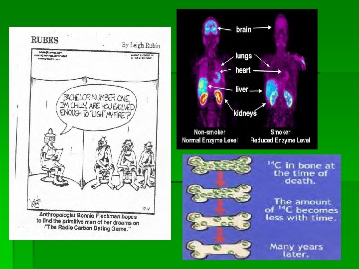 Isotopes cont. § 2. Radioactive tracers § Chemicals labelled with radioactive isotopes are used to trace the steps of a biochemical reaction or to determine the location of a particular substance within an organism. § Isotopes of P, N and H were used to determine DNA structure. § Used to diagnose disease. § 3. Treatment of cancer § Can be hazardous to cells.