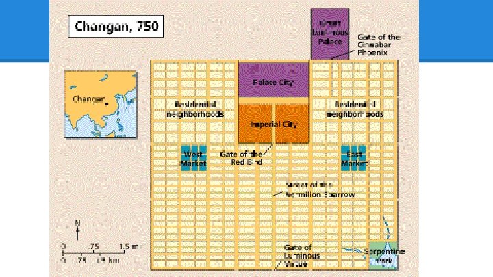 Chang'an Capital was one of the greatest commercial and cosmopolitan cities in the world at that time. Like most capitals of China, Chang'an was composed of three parts: the palace, the imperial city, and the outer city, separated from each other by mighty walls.