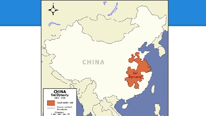 THE SUI DYNASTY (581 - 618) Wen Ti: introduced a series of economic reforms - reduction of the peasants' taxes - a careful census for equitable tax collection - and restoration of the equal allocation system - Every taxable male received a grant of land, part of which was returnable when he ceased to be a taxpayer at age 60 and part of which he could pass on to his heirs. - He also revived the Han system of examinations based on Confucian classics