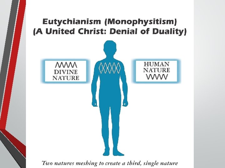 The Eutychian Controversy • Eutychias was a presbyter in Constantinople • Opposed Nestorius at the Council in Ephesus (431) • Advocated the polar opposite of Nestorius: Christ as a fusion of two previous natures