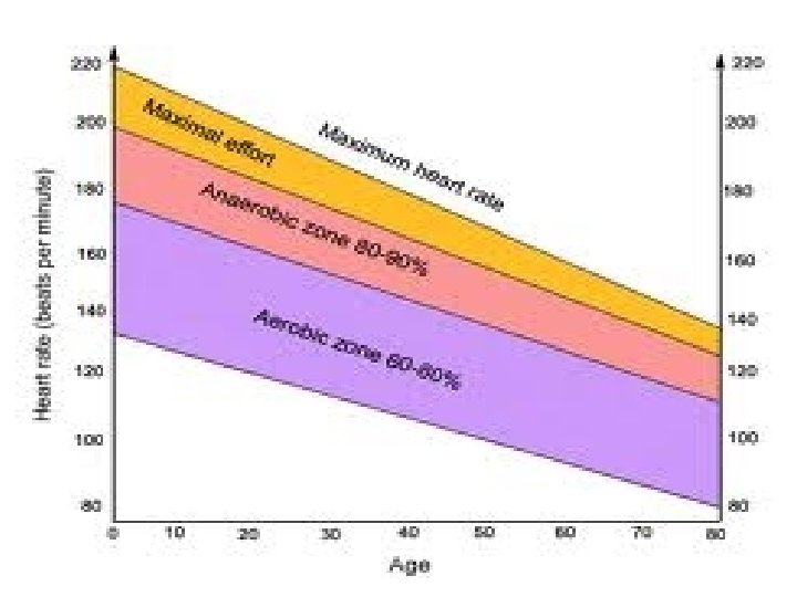 Training Zones • Maximum heart rate (MHR) can be calculated using 220 – age. • This number can then be used on the graph to determine the intensity level at which an athlete is working. • This knowledge is essential so that a sportsperson knows they are training appropriately. • Training in the aerobic zone is the most effective way for improving the cardiovascular system.