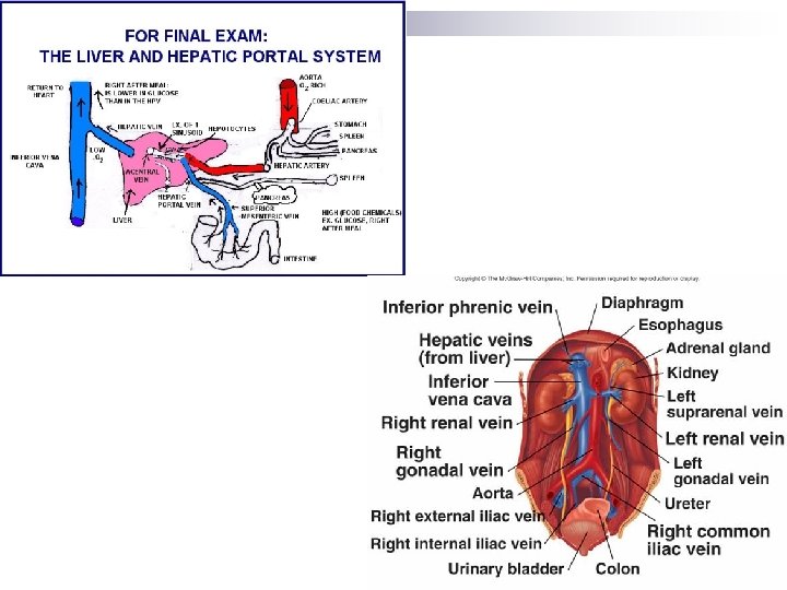 The Hepatic Portal System n n Portal Vein: Any vein that transports blood from one network of capillaries to another rather than to anther vein or the heart. Hepatic Portal Vein: Takes blood from the capillaries of the organs of the digestive system and transports it to the sinusoids of the liver. ¨ n Formed by the joining of the splenic vein and superior mesenteric vein. Hepatic Portal System: Absorbs blood directly from the digestive tract and transports it to the liver to convert some of the rich nutrients into other substances to be used or stored & detoxifies other substances. ¨ Blood in this system is high in nutrients & low in oxygen content.